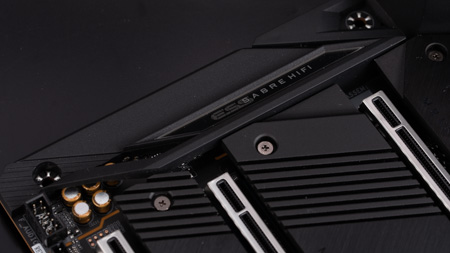 主板有三个M.2接口,都藏在M.2散热器下面,均由PCH所提供,都支持PCI-E 3.0 x4,第一个是不支持SATA 6Gbps的,另外两个支持。