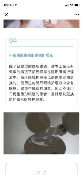 不佩戴的时候 都要取下来清洗 再用护理液侵泡,很多人不清洗 直接丢进伴侣盒里面去就不管了,虽然护理液能自己分解一些蛋白质和油脂类的脏东西 但是久而久之 一些顽固污渍就沉淀在镜片上,形成钙化白点,严重影响舒适度 甚至引起角膜穿孔!