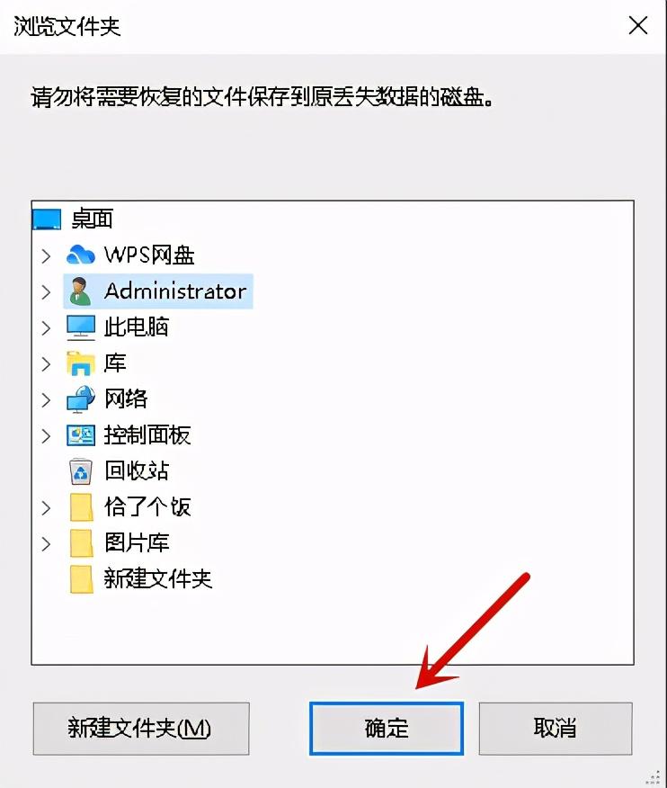 最后一步,在软件弹窗里选择文件保存位置,如果我们直接把文件保存到U盘里是有可能会导致恢复失败的,所以先把文件存在电脑。选好位置之后点击【确定】。