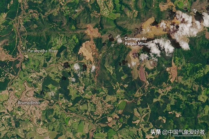 来自美国宇航局( NASA)的Landsat-8卫星近日对灾区展开了观测,获取了矿坝洪水的图像,矿井废水呈褐色并向西流入Paraopeba河。