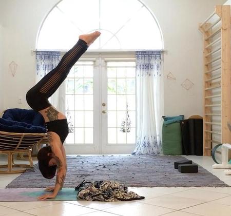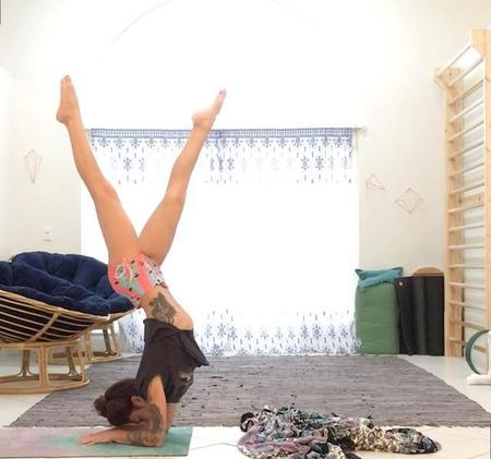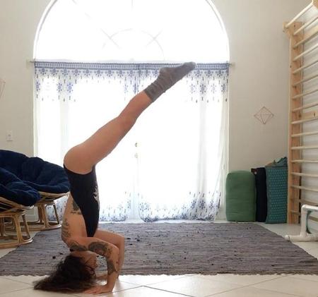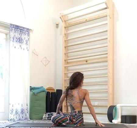 这个动作建议在家做哦!刚练习瑜伽的小仙女可以尝试让人帮忙支撑着身体,或者是可以自己背对着墙,让万能的墙帮你分担身体的重量。