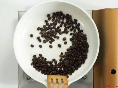锅中倒入咖啡豆,走红翻炒2分钟。2倒入研磨机