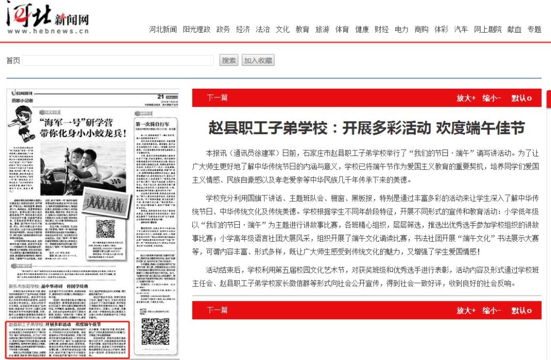 「媒体看赵县」赵县职工子弟学校:开展多彩活动 欢度端午佳节
