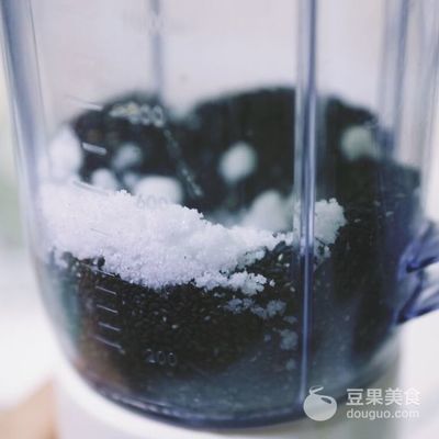 7、熟黑芝麻放2-3勺糖用料理机打成细颗粒,糖量可以根据个人口味增减~