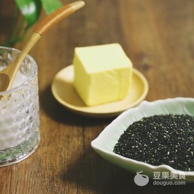 2、白糖、黑芝麻110克、黄油120克,黄油也可以换成猪油,或者一半黄油一半猪油