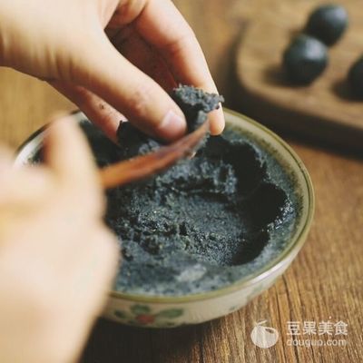 9、拌匀的黑芝麻馅儿放进冰箱冷藏凝固,也可以冷冻,只要黄油凝固就可以了~