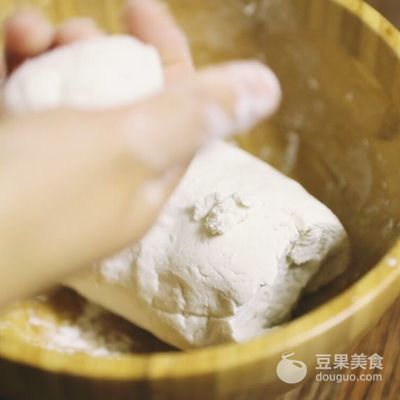 4、揉好的面团容易散,不太好成型,这时候揪一块面团煮熟~