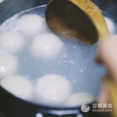 12、水开后下汤圆煮熟,漂上来就熟了,这时候就可以吃了~
