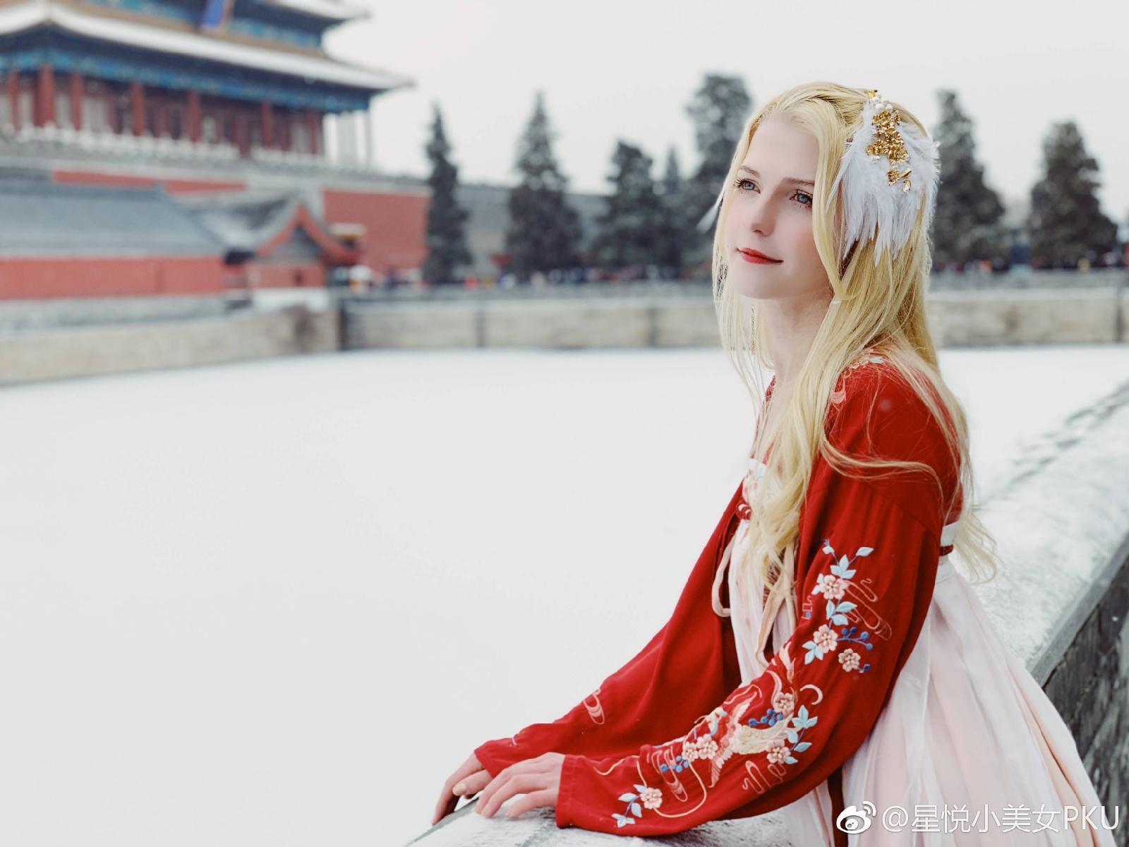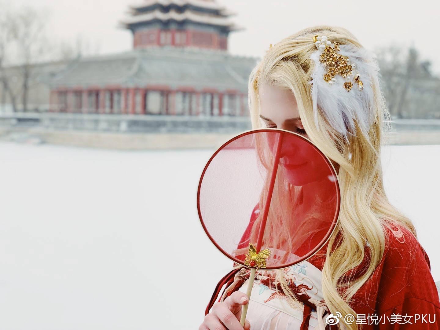 喜欢中国传统文化的星悦最近在微博曝光了一则她在北京拍摄汉服时的花絮。视频中的她穿着美丽的汉服,在故宫雪景中留影,别有一番风姿。