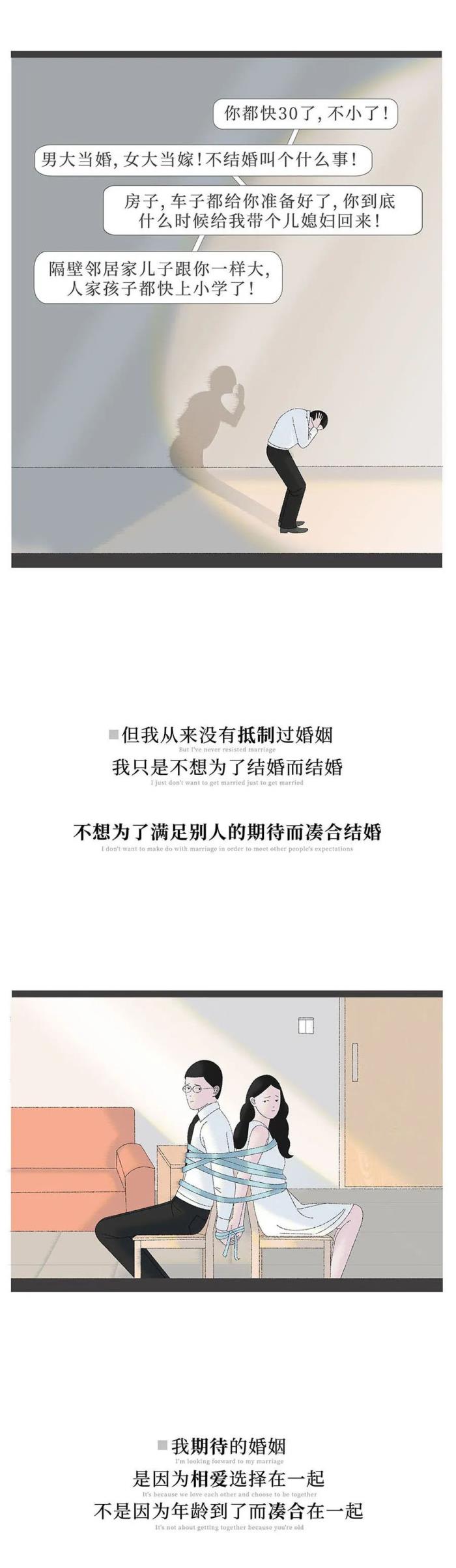 我们想让更多的人,尤其是父母,知道为什么我们身边越来越多的年轻人不想结婚。每个人都应该有选择结婚与否的自由。结婚的初衷是为了让你幸福。只要你开心,我觉得一切都够了。
