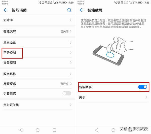 此方法也同样只有部分机型可以使用,同样在【手势控制】中可以查看自己的手机是否可以使用该方法截图。