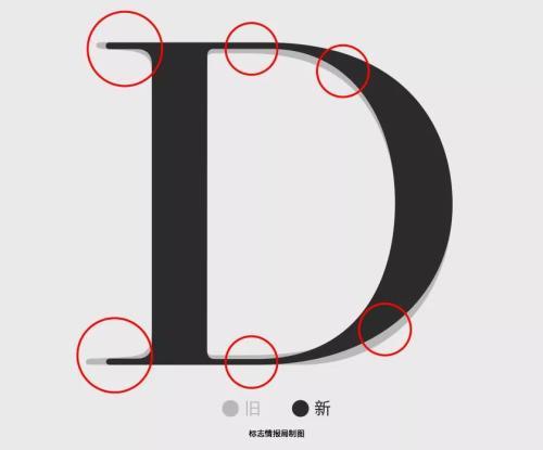 奢侈品设计总是对细节十分苛刻,追求简约而不简单。以D字为例,通过新旧字体对比可以看到,新版的logo外观看上去更加圆润,线条表现得非常流畅、简约,统一字体厚度之后,整体看上去更加协调。