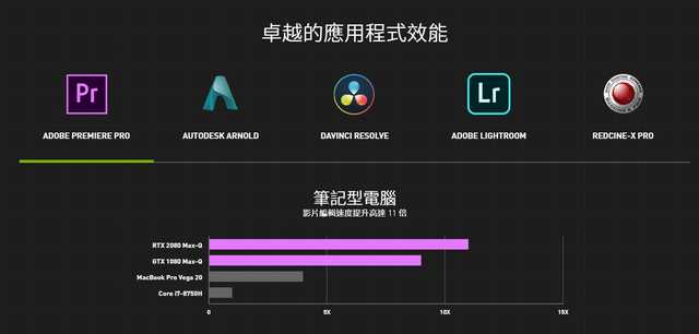 ↑RTX2080Max-Q可以提高11倍影片编辑速度
