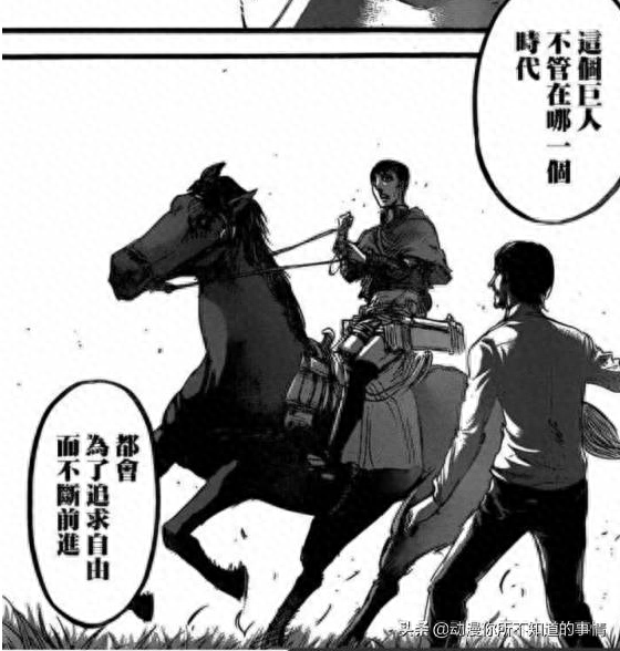 “进击的巨人”的嘴巴里总是传达着“自由万岁,我爱自由”的概念,也就是我们的艾伦老大最爱说的话。现在回想起来,也许这就是尤米尔追求自由的欲望,因此形成了进击的巨人。如果这么说的通的话,其他的巨人是不是又代表这不同的欲望呢?印象中有这么一个路人甲大神的段子,虽然有些尬,但却完美总结了尤弥尔的一生:与生俱来的,我是奴隶(车力巨人),遭到放逐,我是野兽(兽之巨人),得到力量,我是巨人(超巨大巨人),搭建桥梁,我是建设者(战锤巨人),生育后代,我是女性(女型巨人),保护部族,我是护盾(铠之巨人),面对敌人,我亦是爪牙(颚之巨人),立在王的身侧,我是王室(始祖巨人),原来,我还是奴隶(尤弥尔),不,我是自由的(进击的巨人),这是一个很合理的推测,对于那个年代来说,这些需求很正常也没毛病可挑。
