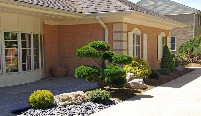 四季常绿庭院绿化树种有:桂花、山茶、冬青、小叶黄杨、女贞、红叶石楠、日本五针松、白皮松、龙柏、金镶玉竹。