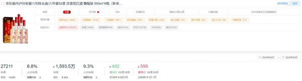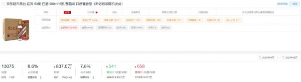 这款白酒在京东二三季度销量超过2.3万件,销额也高达845万元,是京东上了热门榜单的一款酒。