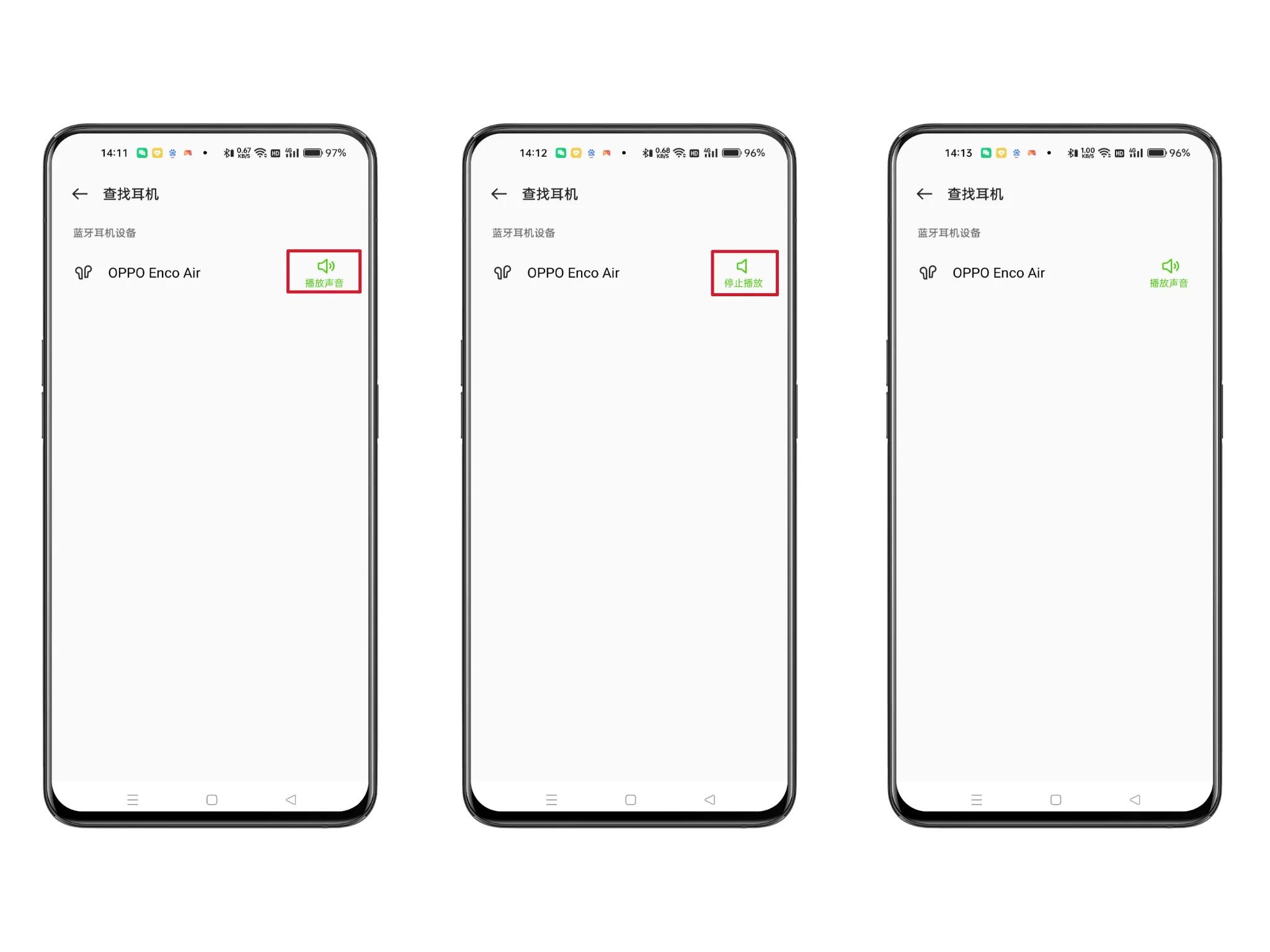 16、跳转页面后,可以看到连接的蓝牙耳机设备,点击【播放声音】,蓝牙耳机就会有声音提示播放。点击【停止播放】,蓝牙耳机播放的提示音就会停止。