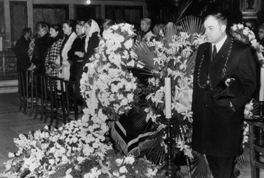 少年时的香奈儿喜欢到坟墓去玩,在这里她可以忘掉自己不幸的家庭并沉湎于想象和神秘符号,她甚至有特别喜欢的墓碑。晚年时,她亲自设计了自己的墓碑,还特别嘱咐准备凳子让来探望的人可以坐下多聊聊。1971年1月10日,可可·香奈儿还能照常工作,在从工作室走回酒店的路上突然内出血,很快就去世了。图为香奈儿的友人在法国巴黎巴黎丽兹酒店为其举行葬礼,香奈儿就这样结束了其传奇又华丽的一生,享年8