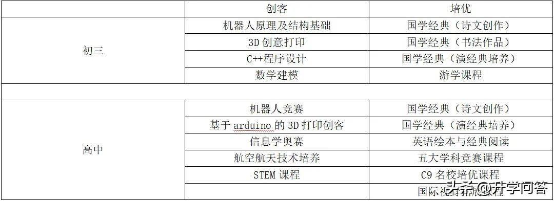70多门校本课程和信息学项目班、韩语班、高考小语种俄语班、日语班可供学生选择,多学科竞赛可参与,如数理化生等学科奥赛,美国高中数学建模竞赛、国际数学建模挑战赛等。