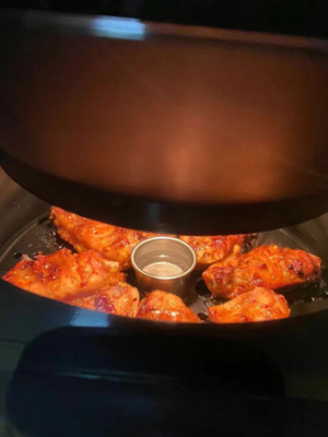 食材在热风的作用下,就会逐渐脱水、变熟,因为美拉德反应和焦炸锅糖化反应,很多食材还会形成金黄色的鸡翅脆皮,散发诱人的香气,就有点像油炸食品馒头了。