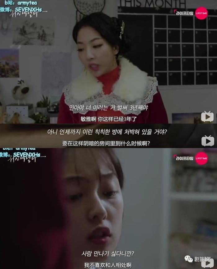 But,不知道是出于什么原因,敏雅就是不肯出门。难道是因为她能够看到鬼的缘故?敏雅的漫画读者们,也觉得她的漫画太单调,缺少爱情元素。但是作为宅女本女的敏雅,拒绝恋爱,拒绝社交。港真,女主的这个生活观念现实中还是挺多的,觉得社交都是麻烦,倒不如在自己的小空间里藏起来。因为,不出门就不会受到伤害了吧。