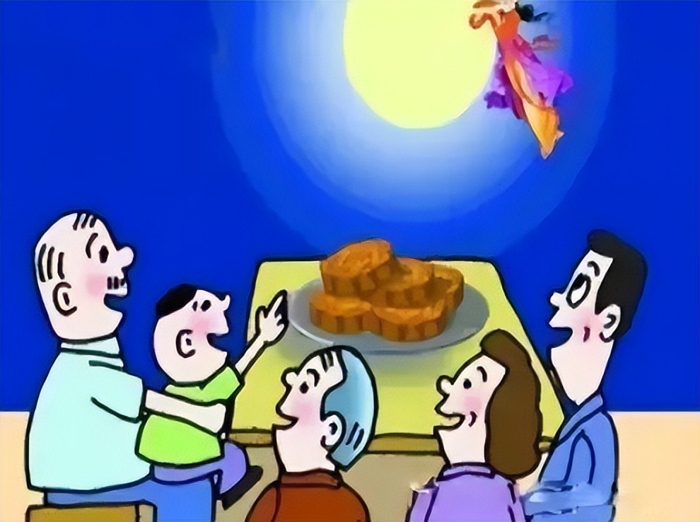 中秋节吃月饼。月饼是圆形的,象征团圆,反映了人们对家人团聚的美好愿望。