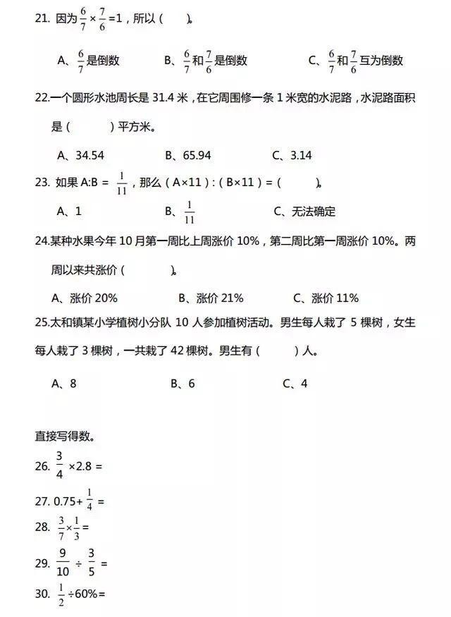 2、点击私信发“7.30六年级经典数学题100道”
