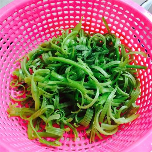 这个季节南瓜基本长好了,而南瓜藤长势特别好,所以家里人都会把南瓜藤最前端的头给摘掉,南瓜杆很嫩的话也摘掉,一起炒来吃,南瓜头可以炒青椒,炒鸡蛋,清炒都行。我今天中午吃的是南瓜头炒白干。