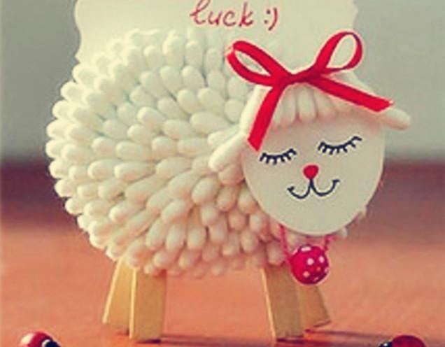 用棉签做个可爱的小绵羊。材料:棉签、卡纸