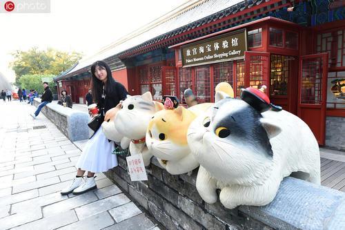 2019年10月28日,故宫神武门附近,现巨型御猫雕像形象生动,惹人喜爱巨型。