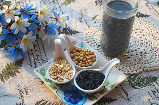 黑芝麻含有大量的脂肪以及蛋白质,还有糖类、维生素A、卵磷脂、钙、铁等营养物质,具有健胃、美发的作用。黑芝麻比较适合和核桃、黑豆、黑米、黄豆等食材一起打豆浆,不仅味道鲜味而且还富含营养,不过热量比较高。