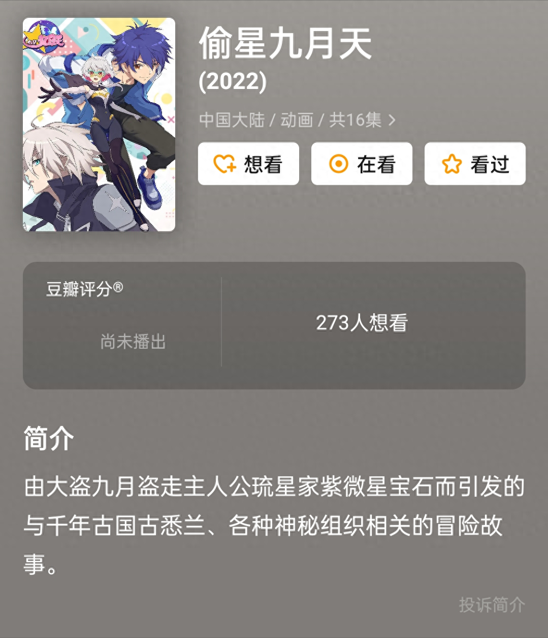 国漫《偷星九月天》动画版豆瓣终于有显示,且B站已经出现动态漫