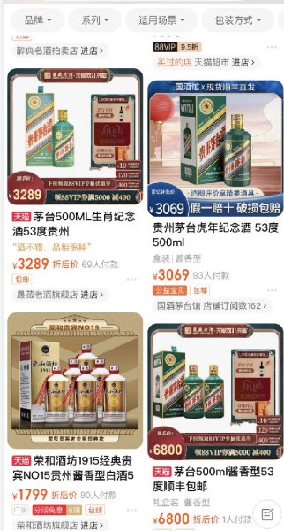 生肖酒这几年之所以火爆,通用的观点是“价值高”,因为酒质好,稀缺,又有文化加持,所以被赋予了收藏和投资价值,这也就导致生肖酒出现高溢价的现象。比如去年虎茅尚未上市,就曾被炒至8000元/瓶,后来即使腰斩一半,也有4000元的价格,高于官方指导价2499元/瓶。一年时间过去,某宝上一瓶虎茅价格普遍为3000元+,但也有高达6000元的。这就好比年轻人喜欢收集盲盒、限量球鞋、明星周边,转手也能溢价卖出赚一波。再比如某知名奶茶刚开业的时候,一杯价格也曾被炒到200多元。
