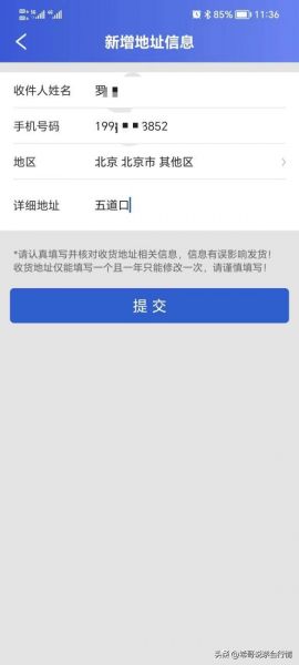 5.填写收货地址时,请认真填写并核对收货地址相关信息,信息有误影响发货!收货地址仅能填写一个且一年(365日)仅有一次修改机会,请谨慎填写!