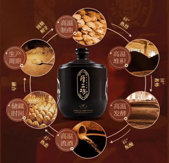 厚工坊生产基地位于茅台镇赤水河畔,坐落于我国酱香白酒核心产区,是贵州省茅台镇名列前茅的酱酒生产企业,拥有三项国家白酒酿造技术专利。酱酒作为白酒市场的主流香型,拥有庞大的消费群体,其地域风俗和性格爱好的不同,人们对酒的口感追求在"酱香突出"和"醇厚绵柔"的基础上也存在差异。厚工坊"绵柔酱香之绝味"的定位已然会成为其占领市场的一个卖点。