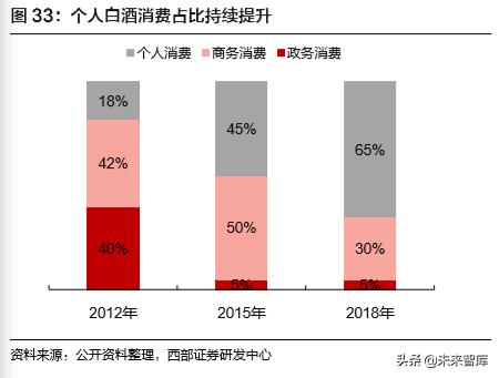 在少喝酒、喝好酒以及白酒节日送礼需求升级的刺激下,个人对高端白酒的消费潜力巨大。伴 随着我国经济结构变化,人均可支配收入持续增长,中产阶级的崛起会形成越来越高的购买力 基数,高净值人群的快速增长对高端白酒的需求也会稳步增加。一方面由于高端白酒的礼品属 性,其个人消费占比会高于次高端白酒,随着个人收入的增长和消费水平的提升,我们认为个 人白酒消费相比于企业消费会表现出更强的韧性,对高端白酒的贡献会持续加大。另一方面, 由于送礼需求更加注重品牌知名度,送礼一般首先高端白酒,从我们草根调研数据也发现节日 消费升级趋势比较明显,80 年代生育高峰对应的现在 29-39 年龄阶段的人群开始成为送礼的 主力人群,个人部门对于高端白酒的需求量上升空间较大。