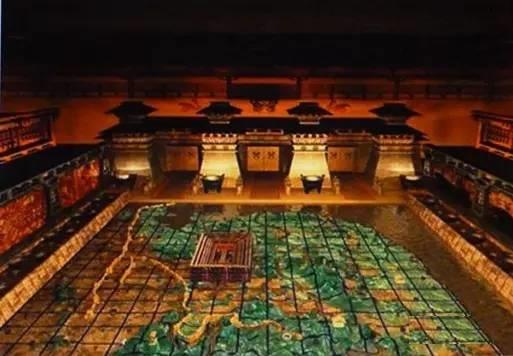 按照文献的记载,地宫顶部遍布绘画出日、月、星及银河、二十八星宿。地面则用水银营造出秦朝的疆域地貌。