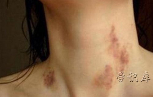 2、吸力产生的负压导致血管破裂,血液泄漏,所以可见皮肤下瘀伤。吸得越是用力,留下来得印记越深。用力地吸,就会留下颜色很深的唇印。