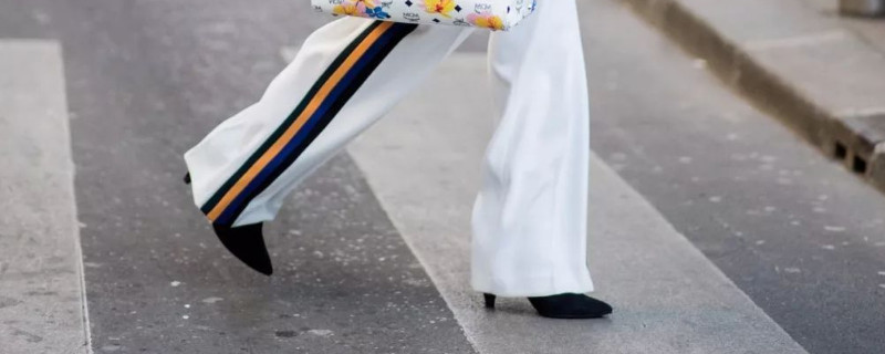 女生首选高跟鞋,看起来更有女人味,但是想要凸显休闲感可以搭配小白鞋,搭配马丁靴也会看起来更个性。拖地裤虽然长到触及地面,但是不会真的踩在脚下,从安全方面考虑,选择拖地裤正好接触地面又不易踩到的长度即可。
