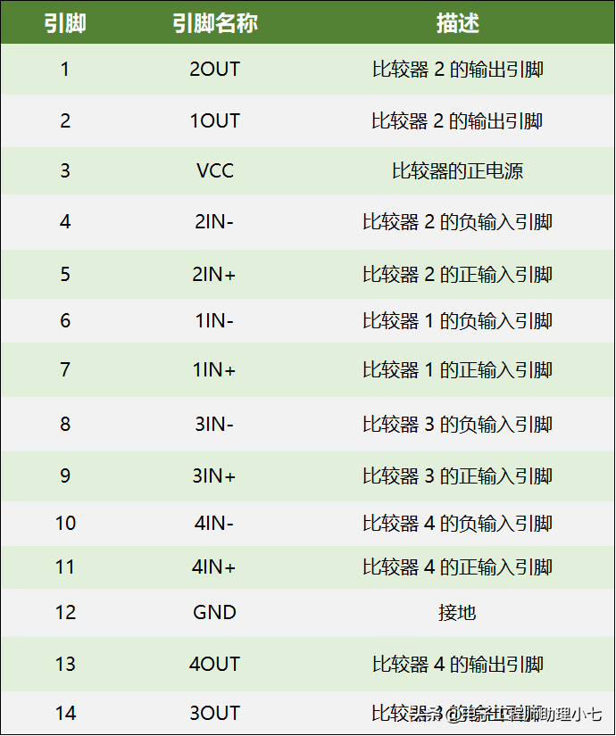 下图为 LM 339 引脚图及功能说明图: