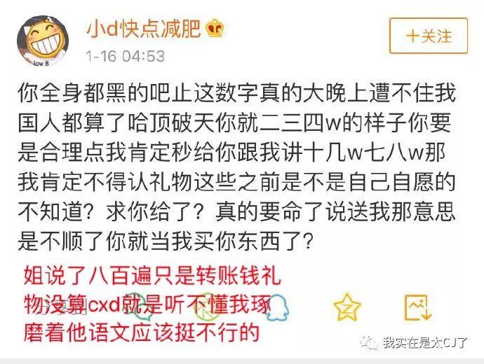 就是人还没出道就享受到了养成系偶像被人追捧的快感,挥霍着有钱粉丝姐姐对自己的宠爱与支持,找人要钱要东西还两头骗地带着女朋友开房浪漫。
