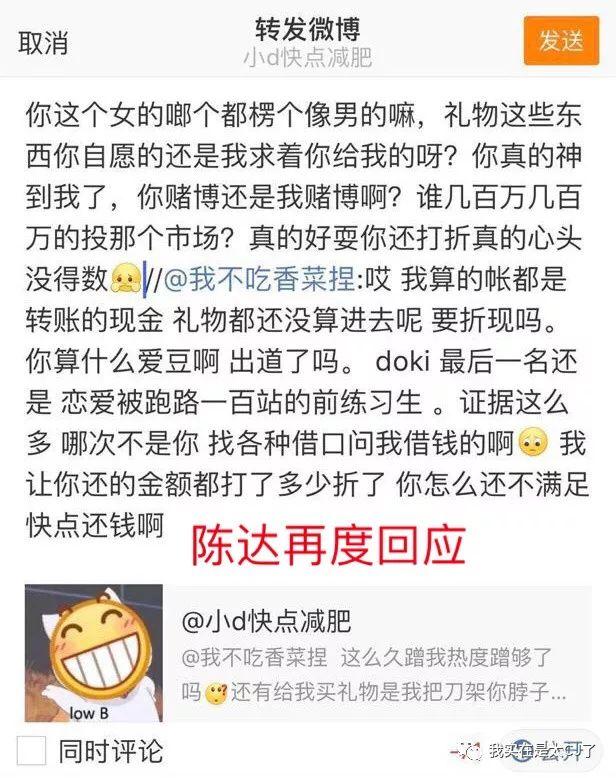 结果那位脱粉催他还钱的粉丝小姐姐(粉圈外号:钱姐)早就爆料,说陈玺达卖前队友行程、八卦,还收钱替粉丝给偶像在役中的前队友送礼物……