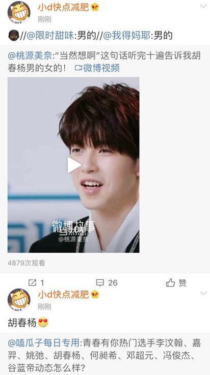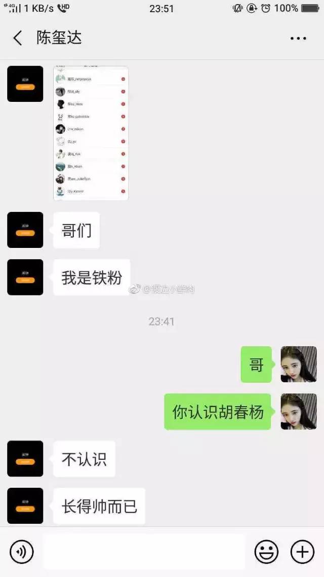 还宣称自己是胡春杨的铁粉,不认识本人,只是看他长得帅