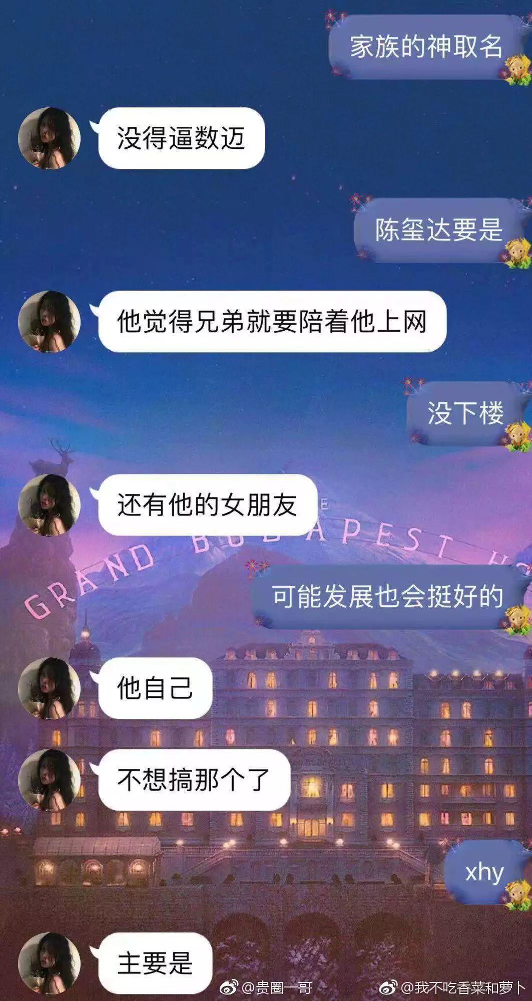 但看去年11月钱姐曝光的陈玺达现女友的QQ聊天截图,感觉他和女朋友对前队友或者说整个TF家族的态度,都挺emmmmmm的。
