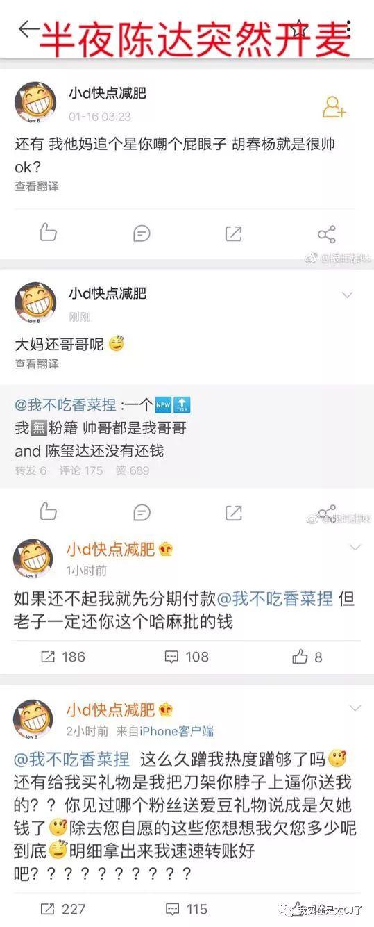 当有人建议他要么开个小号追星(怕陈玺达的名头破坏胡春杨的路人观感),陈玺达直截了当说自己开了CP站