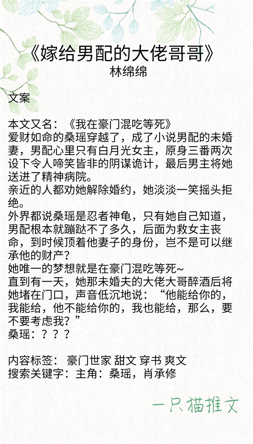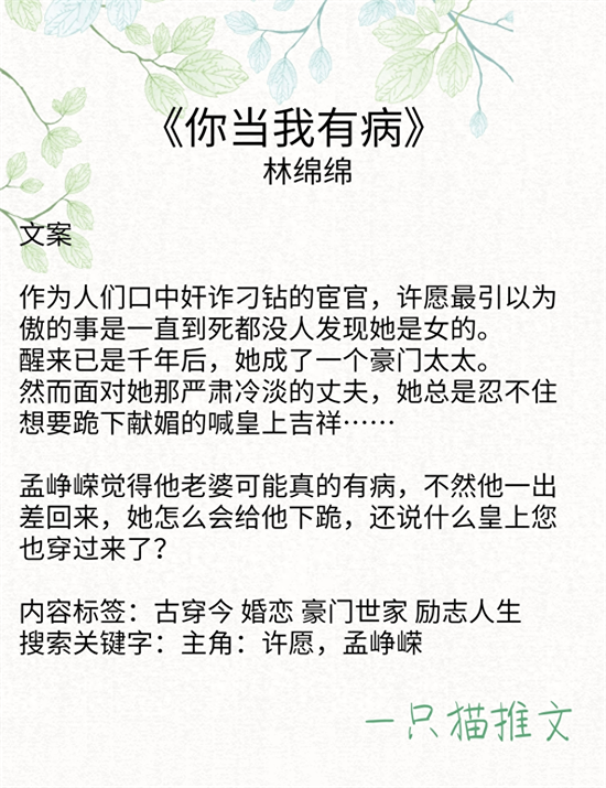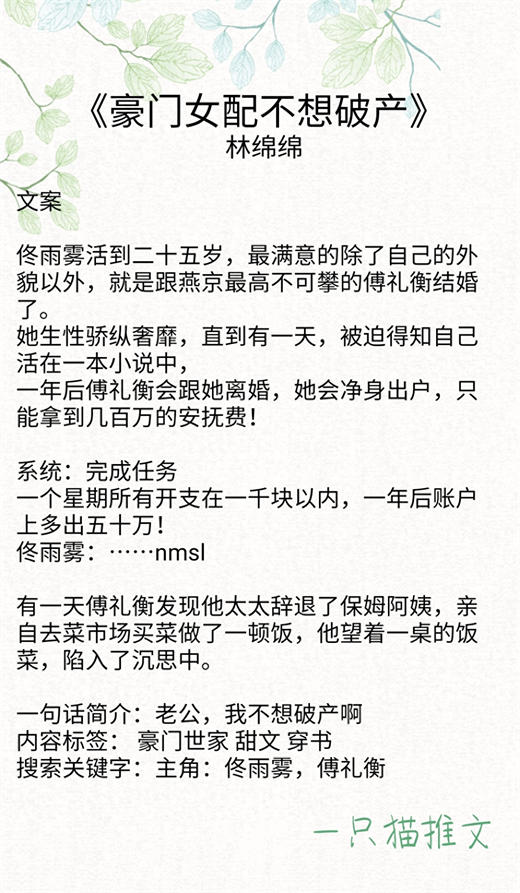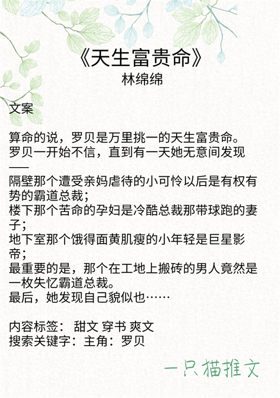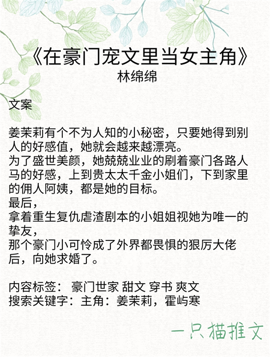 林绵绵是老牌作者啦,很多文都是较早以前的,但是人设放现在看都很有意思,套路得人心的那种好看,明知道是套路,还是想看的感觉!!