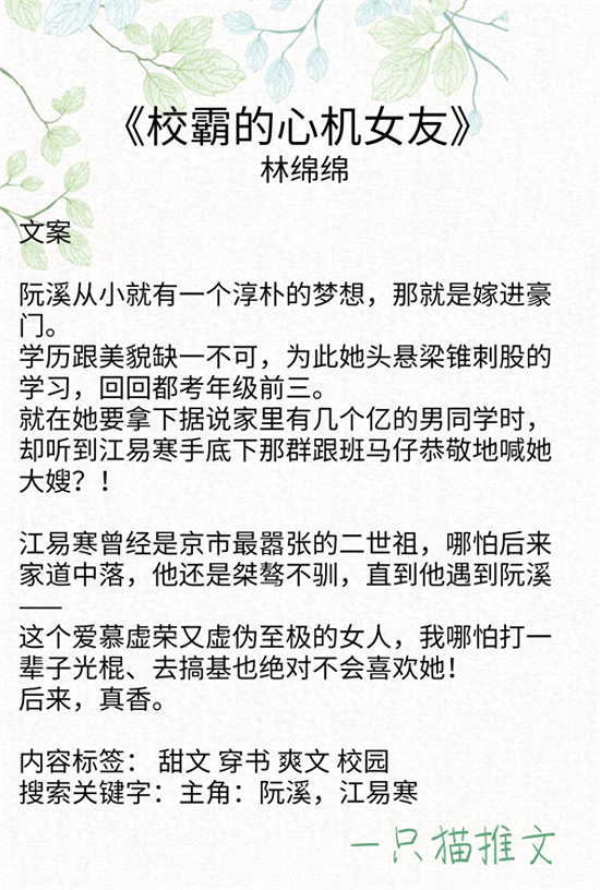 林绵绵:这个作者的书太好看啦,你看过哪些《校霸的心机女友》