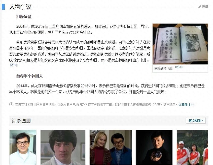据介绍,成龙父亲老家安徽和县房桥村的房氏宗族已经邀请临淄房氏族人认族,并且把成龙、房玄龄、临淄等一起写进了房氏族谱。