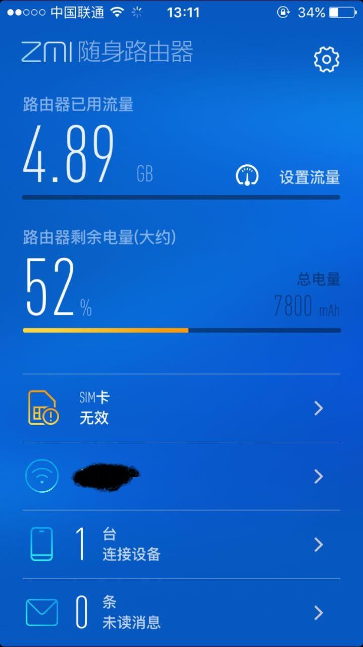 其次,既然已经可以用APP连接到MIFI,完全可以学自家的10000mah新版聚合物移动电源那样,在APP上显示充放电电流和预计使用时间;更好的办法是把“随身路由器”这个APP跟紫米、小米智能硬件的APP完全整合,现在这样实在过于碎片化。