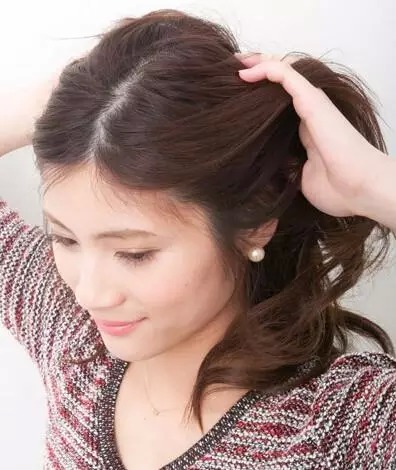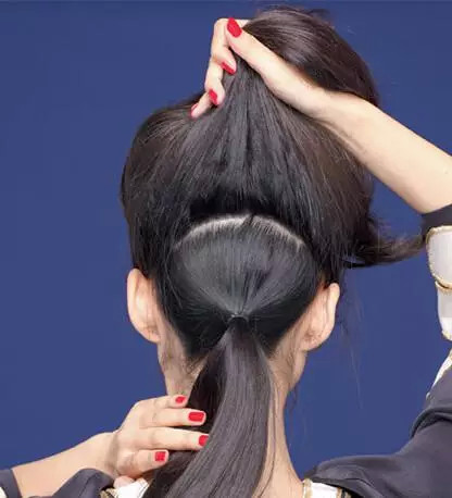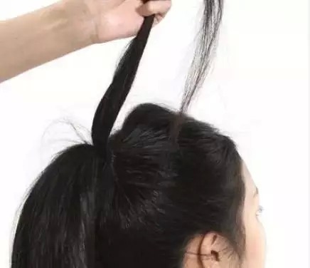 STEP2:从马尾中抽出一小束发丝向上拉起。